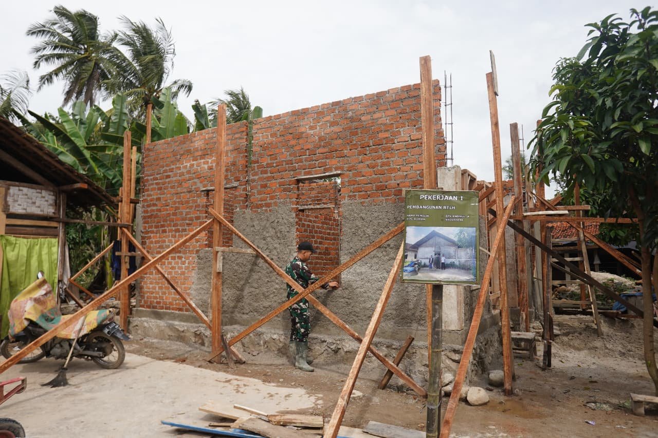 Rehabilitasi Rumah Tidak Layak Huni (RTLH) milik Bapak Khoirul Anwar kini memasuki tahap pemasangan batu bata serta kusen pintu dan jendela. Bata demi bata disusun rapi oleh personel Satgas TMMD bersama warga, menjadi fondasi kokoh bagi hunian yang lebih layak dan manusiawi.