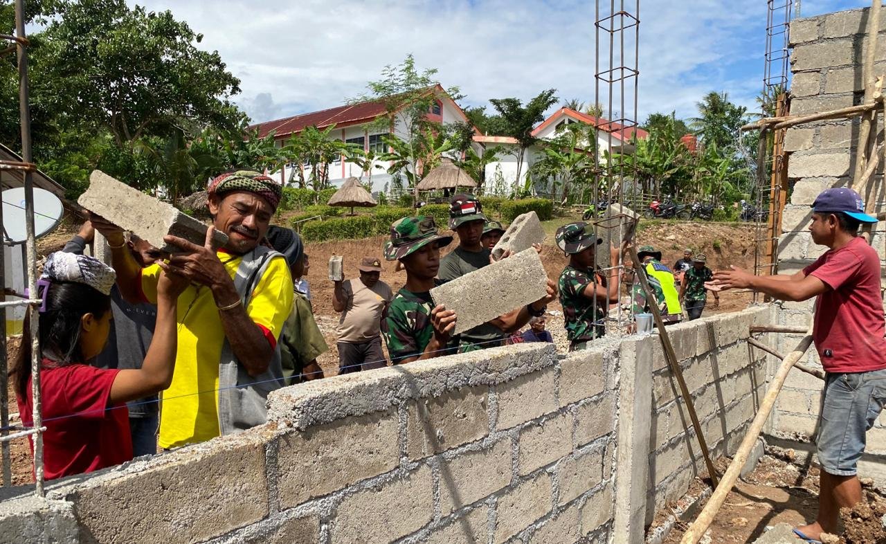 Berderet Angkat Batako, Sinergi TNI dan Rakyat Percepat Pembangunan SMAN Bikomi Nilulat