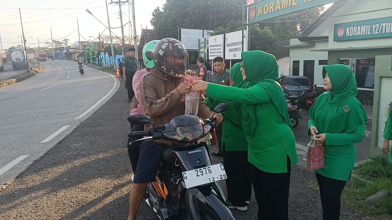 Batang,- Semangat berbagi di bulan suci Ramadhan, kali ini Koramil 12/Tulis telah mengadakan kegiatan berbagi takjil kepada para penguna jalan yang melintas didepan Makoramil. Kegiatan yang berlangsung di jalan Pantura tepatnya depan Koramil 12/Tulis, dipimpin langsung oleh Danramil Kapten Cpm Joko Wahyono dan diikuti oleh seluruh anggota Koramil 12/Tulis beserta Persit Ranting 13. Rabu (12/03/25) sore.