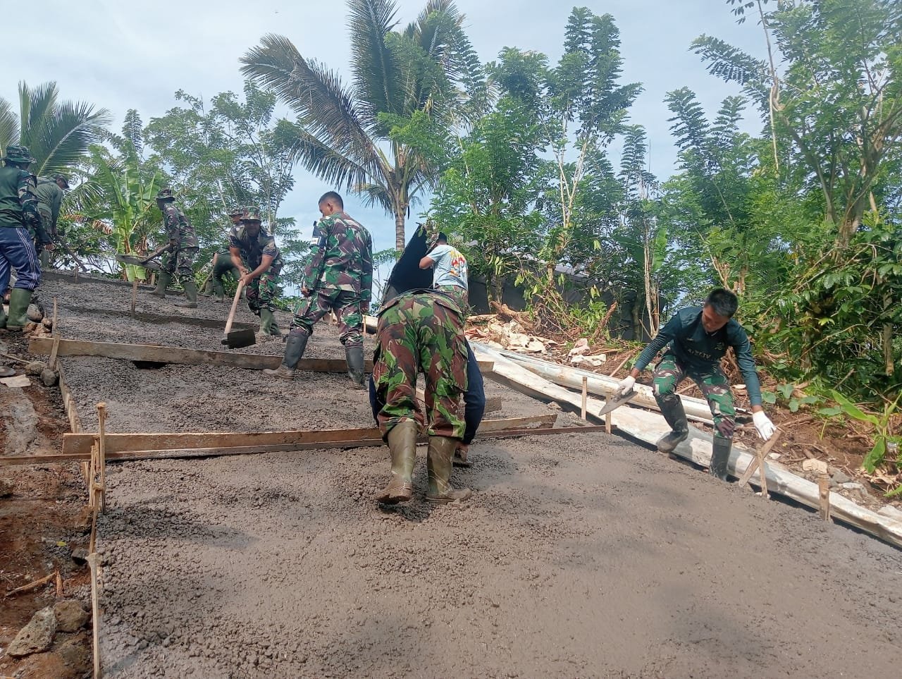 “Betonisasi sisi jalan ini sangat penting untuk menjaga kualitas jalan agar lebih kuat dan tahan lama. Dengan tambahan beton di bagian pinggir, jalan akan lebih kokoh dan tidak mudah terkikis air atau beban kendaraan berat,” ujar Kapten Sujana.