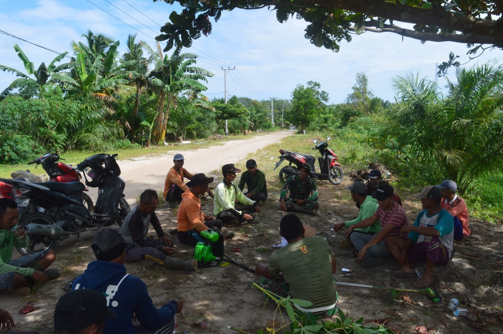 Sukamara – Guna melepas lelah setelah seharian bekerja, anggota Satgas TMMD Reguler Ke-123 Kodim 1014/Pbn beristirahat di Sasaran TMMD disertai senda gurau dengan warga desa Nibung Kecamatan Jelai Kabupaten Sukamara, Senin (24/02).