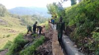 Anggota Kodim 1612/Manggarai Bersama Warga Bangun Saluran Irigasi Waelenteng dalam Rangka TMMD ke-126 di Desa Pinggang