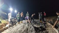 Semangat Gotong Royong Satgas TMMD 126 dan Warga Menggema di Malam Hari Demi Tuntaskan Pengecoran Jalan