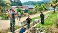 Satgas TMMD 126 dan Warga Desa Ueesi Laksanakan Karya Bakti Bersihkan Drainase