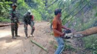 Respon Cepat Satgas TMMD 126 Bersihkan Pohon Tumbang yang Timpa Kabel Listrik di Kolaka Timur