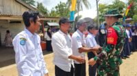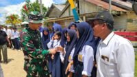 Kedatangan Komandan Satgas TMMD 126 Letkol Inf Choky Gunawan Disambut Meriah oleh Anak-Anak Sekolah di Desa Tanggauna