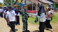 Anak-Anak Sekolah Sambut Gembira Kedatangan Dansatgas TMMD ke-126 di Desa Tanggauna