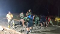 Gotong Royong di Tengah Gelap: TNI dan Warga Terus Cor Jalan Meski Malam Menjelang