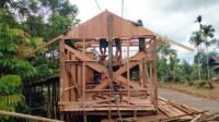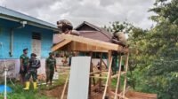 Gotong Royong TNI dan Warga, Rangka Atap RTLH Kedua di Waropko Berdiri Kokoh