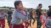 Anak-anak SDN 1 Jamut Antusias Ikuti Senam Ceria Bersama Satgas TMMD ke-126 Kodim 1013/MTW
