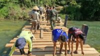 Satgas TMMD ke-126 Kodim 1412/Kolaka Pasang Papan Lantai Jembatan Penghubung Desa Tonggauna–Alaha
