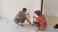 Satgas TMMD ke-126 Kodim 1207/Pontianak Pasang Dinding Keramik Masjid Nahdlatul Ulum di Desa PAL IX