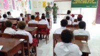 Suasana ceria dan penuh semangat terlihat di SDN Pigapu, Distrik Iwaka, saat Anggota TMMD Kodim Lanjut Membaca….