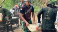 Gotong Royong Satgas TMMD dan Warga Desa Talio Angkut Semen Demi Pengecoran Jalan