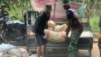 Semangat Tak Terbendung, Anggota Satgas TMMD Kodim 1012/Buntok Angkut Semen untuk Pengecoran Jalan Desa Talio