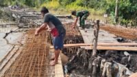 TNI dan Warga Desa Talio Lansir Besi untuk Cor Jalan dalam Kegiatan TMMD
