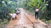 Semangat Tak Kenal Lelah, Satgas TMMD Kodim 1012/Buntok Pasang Papan Jembatan di Tengah Terik