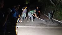 Malam Tak Halangi Semangat Satgas TMMD Kodim 1609/Buleleng Genjot Rabat Beton di Desa Depeha