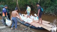 Satgas TMMD 1012/Buntok Angkut Pasir dengan Perahu Menuju Lokasi Sasaran