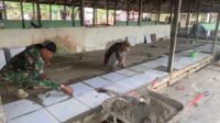 Pemasangan Keramik di Pasar Desa Talio Capai Separuh Lantai, Progres TMMD Terus Meningkat