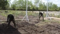Satgas TMMD Kodim 1012/Buntok Gunakan Cangkul Bersihkan Rumput untuk Ketahanan Pangan