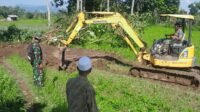 Setelah Pondasi Jembatan, Satgas TMMD Ke-124 Keruk Sawah Jadi Jalan Baru di Bagu