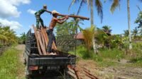 Anggota Satgas TMMD Reguler ke-124 Bantu Warga Turunkan Kayu untuk Kandang Ayam