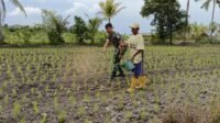 Personel Satgas TMMD Reguler ke-124 Membantu Warga Memupuk Tanaman Padi