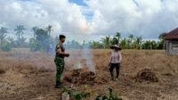 Personel Satgas TMMD Reguler ke-124 Membantu Warga Membakar Rumput Kering yang Nantinya Akan Ditanami Padi