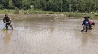 Babinsa Sertu Alifin Dampingi Petani Desa Kabukarudi Tanam Padi Demi Dukung Ketahanan Pangan