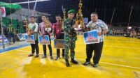 Danramil 1014-05/Pangkalan Banteng Serahkan Piala Juara Turnamen Bola Voli BABINSA CUP III