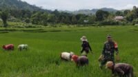 Personel Posramil Parado Bantu Petani Desa Kanca Tanam Padi