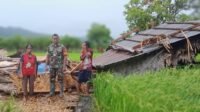 Babinsa Karera Bantu Evakuasi dan Bersihkan Puing Rumah Roboh Akibat Hujan Deras dan Angin Kencang di Desa Kakaha