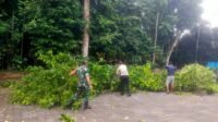 Babinsa Amankan Pemangkasan Pohon di Parkiran Bus Desa Wisata Penglipuraan Untuk Antisipasi Musim Penghujan