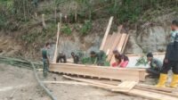 Semangat Gotong Royong, Satgas TMMD ke-123 Kodim 1424/Sinjai Bahu Membahu Bangun Jembatan di Desa Lamatti Riawang