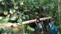 Kegigihan Prajurit TNI dalam TMMD ke-123 Kodim 1424/Sinjai dengan Bahu-Membahu Angkat Kayu dari Hutan untuk Pembangunan Jembatan