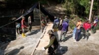 Satgas TMMD ke-123 Kodim 1424/Sinjai Lanjutkan Pembangunan Jembatan dengan Pelepasan Papan Cor Tiang Jembatan