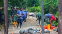 Bahu – Membahu,Warga Dan Satgas TMMD 123 Ditarakan Pasang Pondasi Jembatan