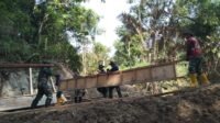 Personel Satgas TMMD ke-123 Kodim 1424/Sinjai Bahu Membahu Pikul Balok untuk Penopang Pengecoran Lantai Jembatan