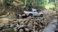 Personel Satgas TMMD ke-123 Kodim 1424/Sinjai Kerahkan Mobil Pikap untuk Angkut Material Batu ke Lokasi Jembatan