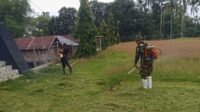 Personel Satgas TMMD ke-123 Kodim 1424/Sinjai Bersama Warga Babat Rumput Lapangan di Desa Lamatti Riaja