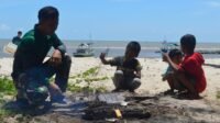 Bakar Ikan Bersama Anak – Anak, Strategi Satgas TMMD Jalin Keakraban