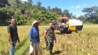 Babinsa Mangge Asi Turun ke Sawah, Bantu Petani Panen Padi