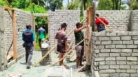 Anggota Satgas Bersama Warga Kebut Pengerjaan Rehab Musholla “Babul Jannah”
