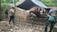 Satgas TMMD Ke-123 Kodim 1424/Sinjai Tuntaskan Perakitan Rangka Besi Pengecoran Tiang Penyangga Lantai Jembatan