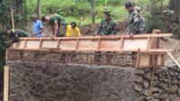 Satgas TMMD Ke-123 Kodim 1424/Sinjai Lakukan Pemasangan Papan Mal Pengecoran Tiang Penyangga Jembatan