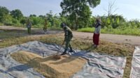 Usai Bekerja Personil Satgas TMMD Ke 123 Bantu Warga Jemur Gabah