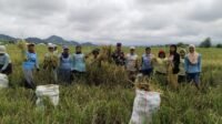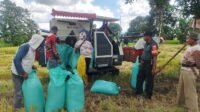 Dukung Ketahanan Pangan, Babinsa Koramil 1426-02/Polsel Dampingi Petani Panen Padi