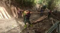 Penuh Semangat, Satgas TMMD ke-123 Kodim 1424/Sinjai Pindahkan Material Kayu untuk Pembangunan Jembatan