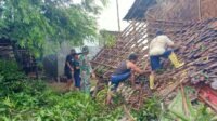Babinsa Bersihkan Material Rumah Ambruk Akibat Tertimpa Pohon Tumbang